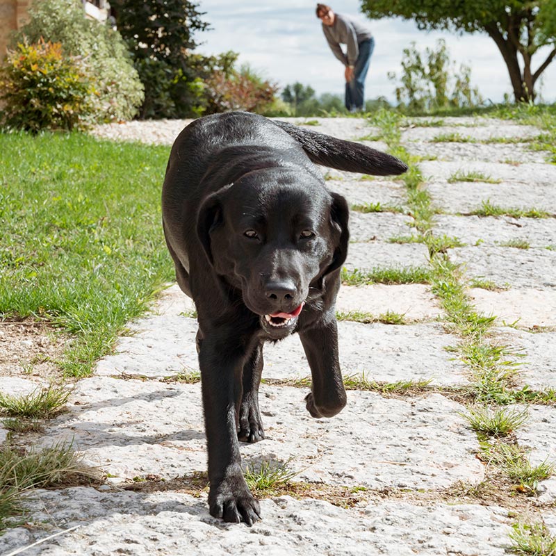 eine elegante schwarze Labradorhündin mit einem Herz aus Gold, die immer bereit ist, mit ihrem süßen Blick und ihrem unerschöpflichen Spieltrieb Zuneigung zu spenden.